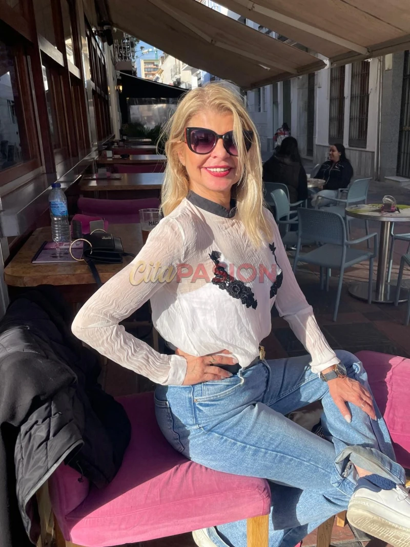 Hola, soy una mujer madura en Marbella, elegante y auténtica, que sabe cómo hacer que cada momento se vuelva especial y único. Mi figura seductora y mi melena rubia te harán perderte en una experiencia que recordarás siempre. No necesitas más que mirarme para saber que lo que ves es auténtico; mis fotografías actuales y sin retoques me muestran tal cual soy.